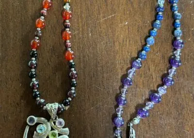 I love working with crystals. They hold such strong, clear vibrations. By adding those “notes” to my environment, I am supported in awakening them within myself. I can more easily find “grounding”, “clarity”, “inspiration”, “protection”, etc. and activate those energies for myself. I gather my crystals together to create Mesas or shamanic altars. These range in size from a small travel bundle to a whole house grid. I use my crystals to anchor intentions on my behalf, allowing me to still be protected and shielded when I’m tired or connected to healing energies as needed.